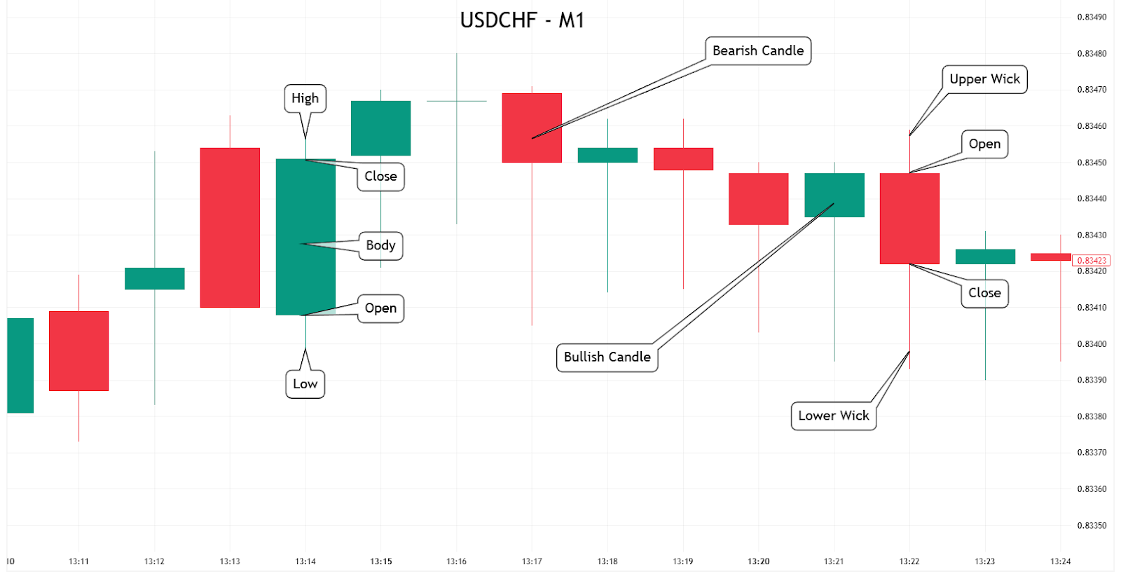 Figure 3: candlestick chart that combines price structure with colour to show bullish or bearish bias via open, close, high, and low.